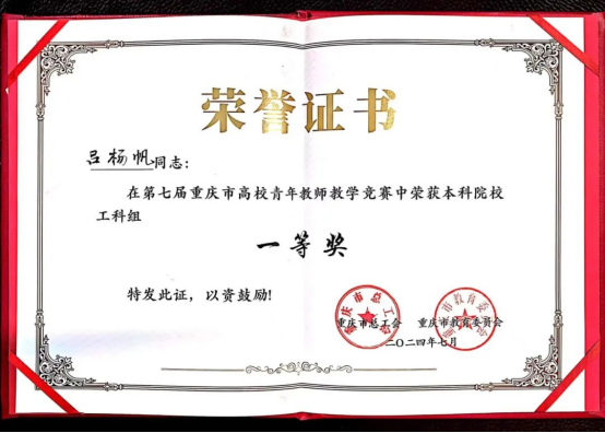 2024年7月,由重庆市总工会、重庆市教育委员会主办的第七届重庆市高校青年教师教学竞赛总决赛在重庆大学虎溪校区落下帷幕。本次比赛以“上好一门课”为理念,设置了工科(含医科)、文科、理科、思想政治理论课专项(含劳动教育)四个组别,来自重庆市62所高校的216名教师同台竞技、共展风采。经激烈角逐,我院病理科吕杨帆副教授荣获院校工科(含医科)组一等奖,实现了大学在该项赛事新的突破!