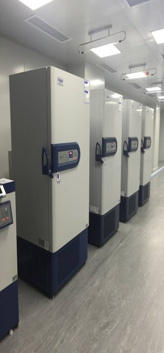 依托病理科筹建的新桥医院生物样本库科研服务平台于2016年10月正式成立。主库占地近600平米,包括常温区(蜡块柜)、低温区(冰箱和超低温冰箱)、深低温冰区(液氮罐)、前处理室、质控区以及信息资料室等,可容纳20台-80℃超低温冰箱,多个大容量液氮储存罐,整个储存空间接近300万份库;可接收血清、血浆、血细胞、DNA、尿液、肿瘤组织等样本类型,能满足生物医学研究对样本的需求。目前有超低温冰箱、自动化液氮罐、生物安全柜、入库信息登记系统、温度监测系统、监控系统、氧气监测以及压力监测仪等。