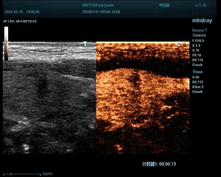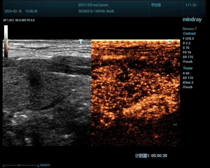 观察甲状腺结节的血供情况:超声造影能够显示甲状腺结节的血供情况,有助于判断结节的活性及是否存在恶变倾向。