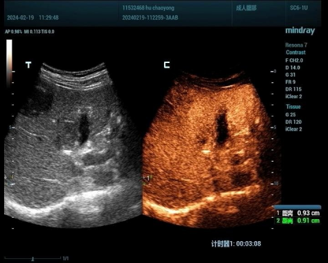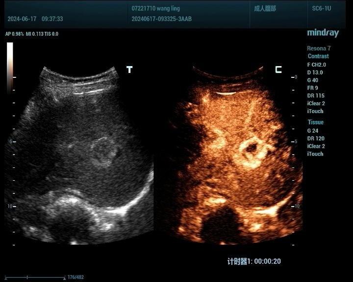 肝脏肿瘤分为良性和恶性,其中血管瘤是最常见的肝脏良性肿瘤,肝癌是最常见的恶性肿瘤。肝脏肿瘤超声影像诊断方面主要有肿瘤病灶的检出、对已检测肿瘤的定性诊断、肝局灶性病灶中肿瘤与非肿瘤病变的鉴别。超声造影对肝脏肿瘤的鉴别诊断主要是通过增强和动态增强方式观察肿瘤。
