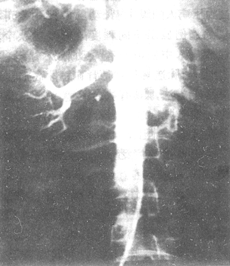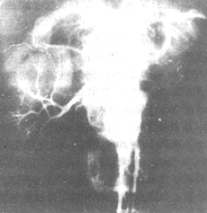 ㈡排泄性尿路造影(即静脉尿路造影,IVU) 近30余年来,由于对肾血管疾病认识的提高及对其引起的肾血流动力学改变的进一步瞭解,对IVU所能提供的要求亦随之增高。在肾功能方面要能反映肾血流量、肾小球滤过率、肾小管再吸收和分泌等有关变化,借以作为筛选肾血管疾病的进一步检查和处理的依据。在60~70年代,许多学者均推荐用分钟间隔连续静脉肾盂造影(minute sequence intravenousp