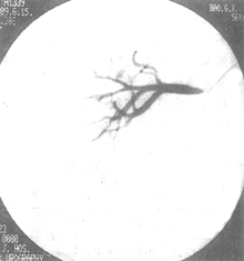 在造影技术上,目前以经皮穿刺股动脉插管法的应用最为广泛,此法显影清楚,亦较安全方便。