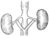 3.脾、肾动脉吻合术 适用于左肾动脉狭窄性纤维肌肉增生病变,要求脾动脉有足够的大小,可从术前主动脉造影看出(近年来,有多篇报道提出以肝、肾动脉吻合术治疗右侧肾动脉狭窄,获得良好效果)。