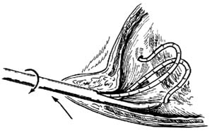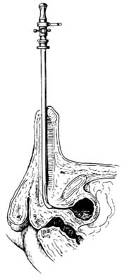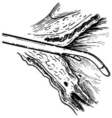 男性用1%地卡因5~10ml注入尿道,保留10分钟;女性用棉签蘸1%地卡因留置尿道内10分钟,即达到麻醉目的。必要时可用鞍麻或骶管阻滞麻醉。
