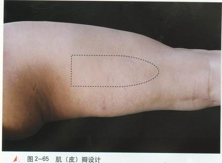 肉缝合固定,以免皮瓣肌分离而影响血运;④股二头肌短头与骨附着太长,血管束短,手术操作难度大,不宜选用。
