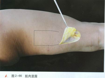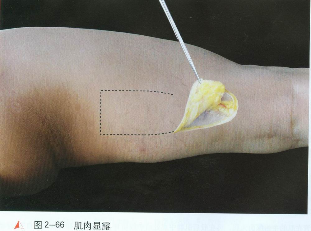 长度。但多与半腱肌支共干,故在游离肌(皮)瓣处理神经时,注意保护半腱肌支,慎勿伤及;③术中暂时将皮瓣与肌