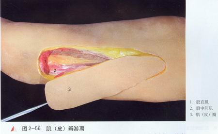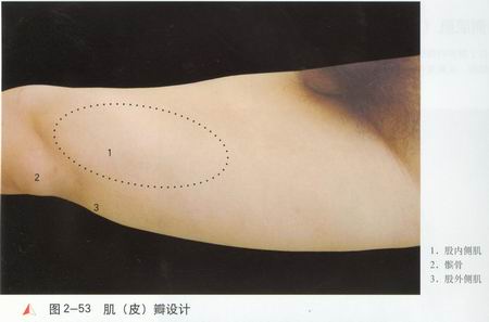 股内侧肌起点以增加肌(皮)瓣移动度时,应注意勿损伤位于肌肉起点附近的神经血管。