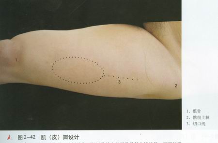 (皮)瓣,如果受区部位较高,可充分向上游离血管神经束达5cm,以获得足够的长度。