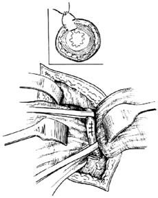 若输尿管结石部位炎症较重,需在输尿管切口上端另作一小切口,插入4~5号输尿管导管至肾盂作为引流,由腹壁原切口或另作一小切口引出。