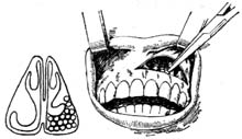 4.偶有经鼻内切开鼻底前部粘膜,作粘膜下堵塞术者(图4)。