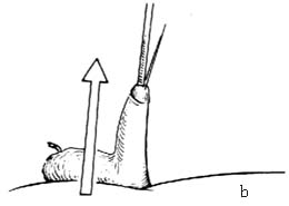 b.传统的阴茎上举位固定法 |