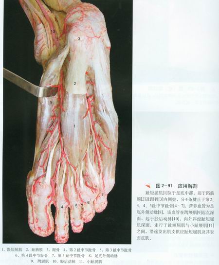 是趾短屈肌及其表面皮肤的血供,术中酌情选取血管蒂;③手术时应仔细地将足底外侧动脉保留在皮瓣内;④供区创面过