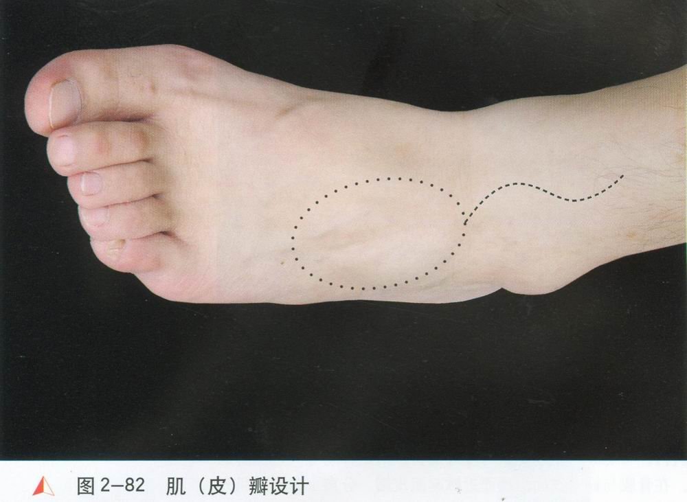第1跖背动脉,切断足底深支。在骨膜与韧带浅面由远而近掀起肌皮瓣,分离至趾短伸肌外