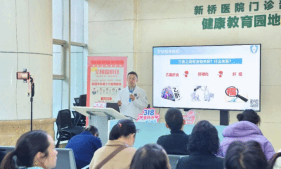 今天(18日)是第24个“全国爱肝日”,今年活动主题是“早防早筛,远离肝硬化”,为进一步提高全民爱肝护肝的科普知识,陆军军医大学新桥医院肝胆外科医护团队在该院门诊部健康教育园地开展了“爱肝护肝、你我同行”公益活动,通过免费为市民问诊、诊疗及科普宣教提高大众爱肝护肝意识,远离肝病。