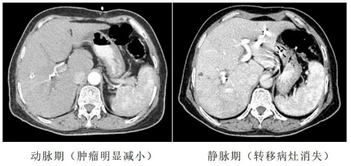 由于侯女士的病情分期较晚,不具备直接手术条件,肝胆外科发起MDT多学科会诊,经新桥医院肿瘤科、放射科、病理科、超声科等多学科专家MDT团队评估后为侯女士制定了肿瘤降期治疗“化疗GAP方案+抗肿瘤免疫治疗”的治疗策略,旨在先缓解症状、缩小瘤体及转移灶,争取创造根治性手术机会。第一个治疗周期后侯女士各方面症状明显改善,第二个周期侯肿瘤标志物血清CA 19-9水平较化疗前(436u/ml)降至正常(4.74u/ml)。“方案效果很好!候女士病情显著改善,肿瘤病灶明显缩小,肝内转移病灶消失,肿瘤降期治疗策略获得成功”唐艺宸副主任医师介绍道。经过医患双方6个月的共同努力,侯女士终于迎来了手术治疗的机会。