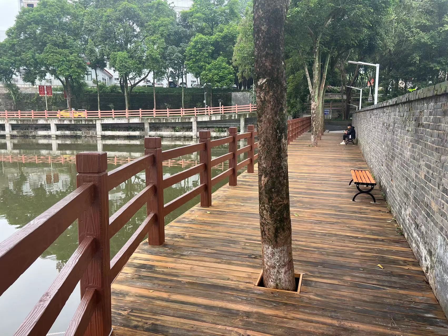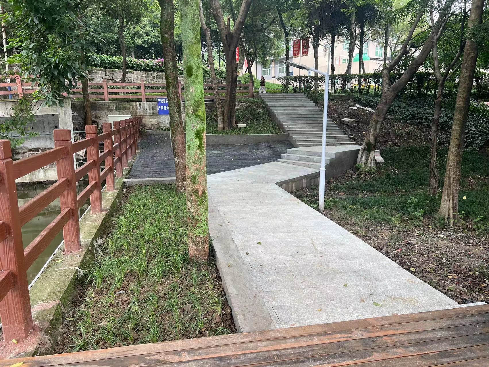 为提升教职员工及患者满意度,为来院人员提供便利,塑造交通安全、环境友好的医院形象,院务处营房办通过修筑河道挡墙、改善绿化环境、配合修建人行钢便桥、改造柳岸池步道、安装柳岸池夜间灯饰等举措,完成院内轨道交通出入口周围环境综合整治,使出入口周边道路成为集休闲、交通为一体的进院主通道。