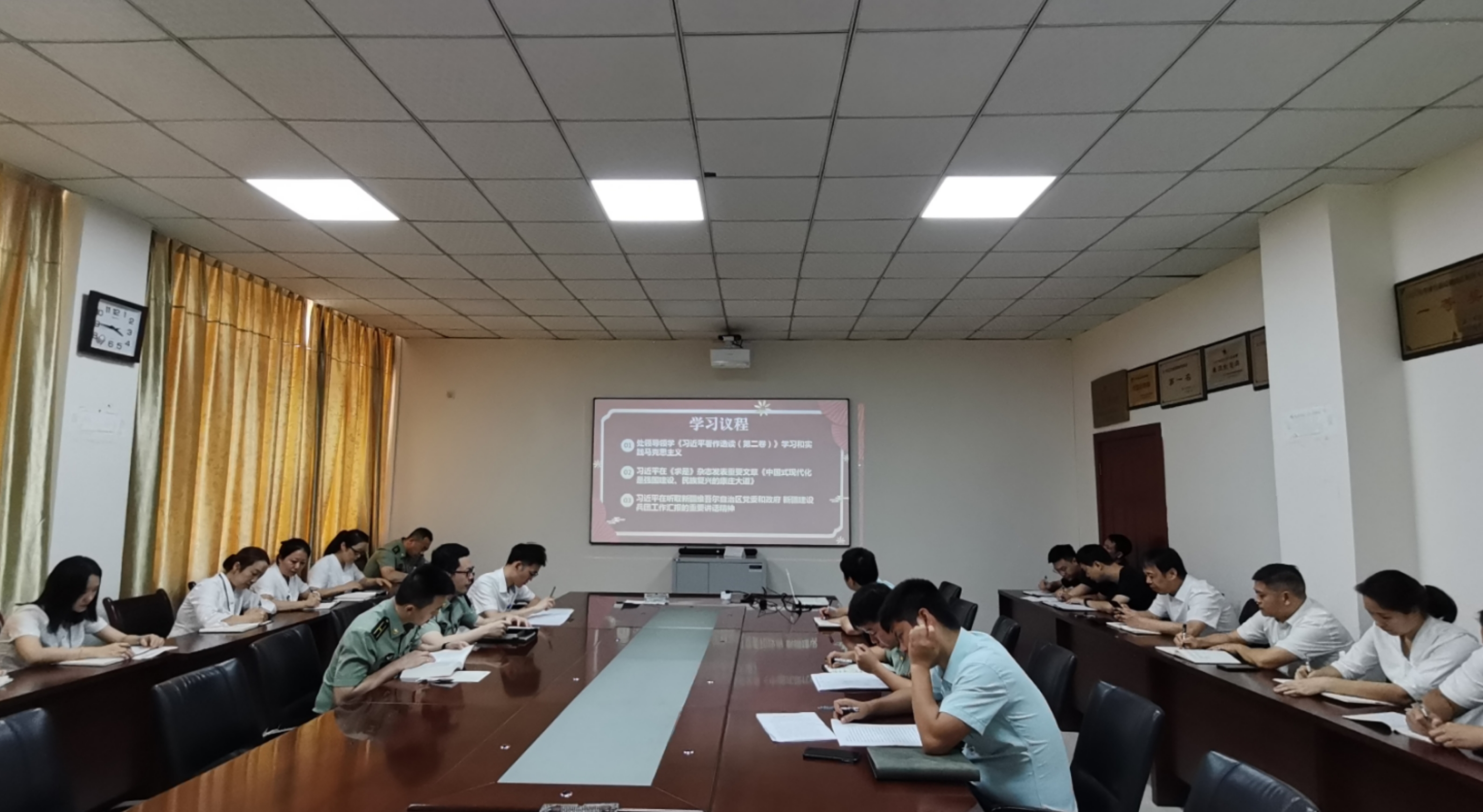 院务处党支部根据医院党委要求,深入开展学习贯彻习近平新时代中国特色社会主义思想主题教育。本周起,由院务处处长领导院务处全体党员、机关人员、各班组长对党的章程、二十大报告及习主席著作进行了逐字逐句学习研读,并结合工作实际,深入开展检视剖析。学习过程中对因故不能参加学习的人员均制定了补学计划,每次学习前安排专人进行资料收集和下发,保证参学人员能先预习再学习,确保学习效果落地,认真抓好落实。