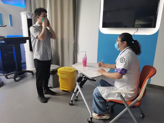 9月1日上午8点,为期2天的院级考核正式开始,参考人员按照现场检录顺序,分批有序进入各考核环节,由院内疫情防控专家组进行“一对一”考核打分。