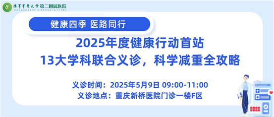 为响应《“健康中国2030”规划纲要》和国家卫健委《超重肥胖防治行动方案》,正值“5·11中国肥胖日”前夕,新桥医院门诊一楼F区健康教育园以“健康四季,一路同行”为主题的义诊活动在此圆满举办。13大学科联合义诊,聚焦肥胖及相关代谢性疾病,为市民送上全面健康服务。