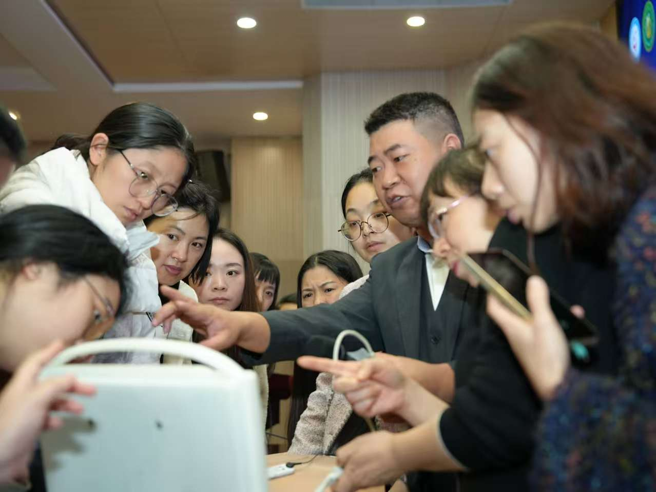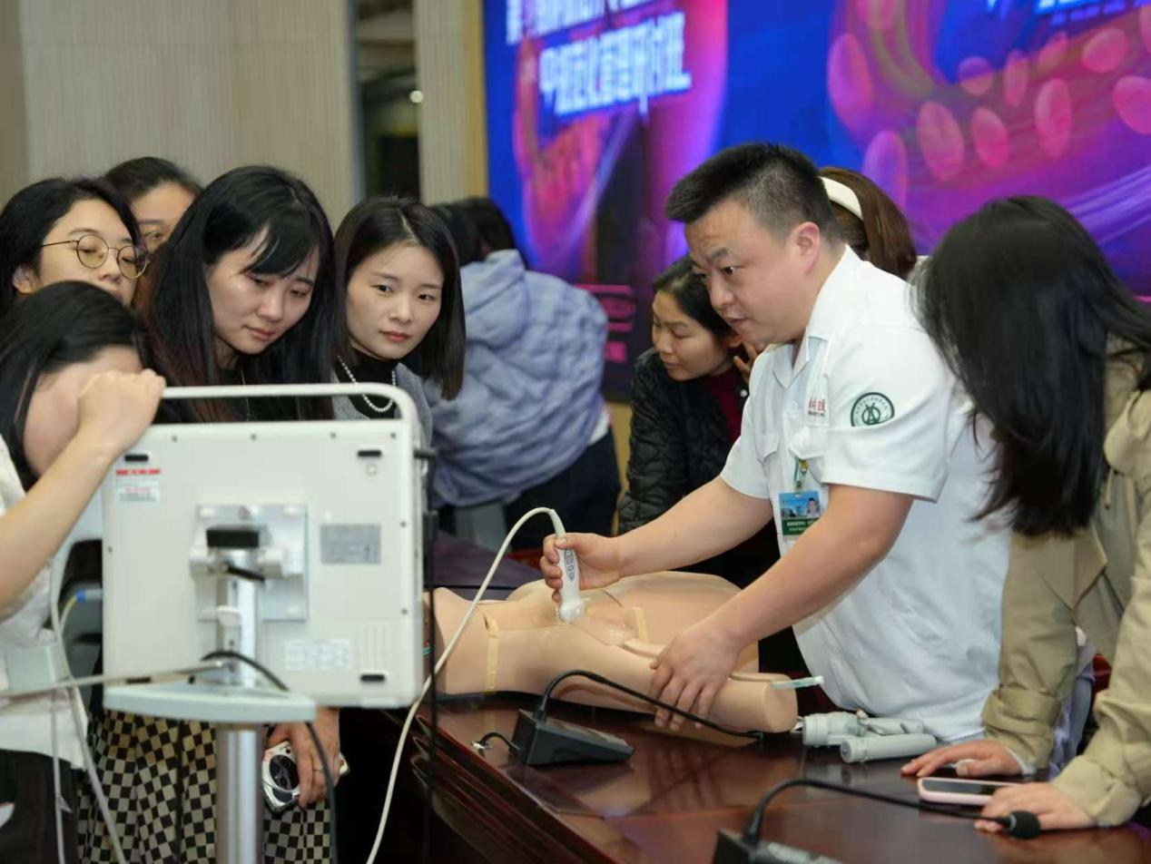 实操工作坊聚焦智能化技术在静疗领域的创新应用,成为本次培训的一大亮点。来自新桥医院护理处的陈萍总护士长及血液病医学中心的陶俊护士长通过理论、视频、实操等环节,让参训学员沉浸式参与并掌握了AI超声在PICC置管中的应用(血管通路选择及导管尖端定位)。