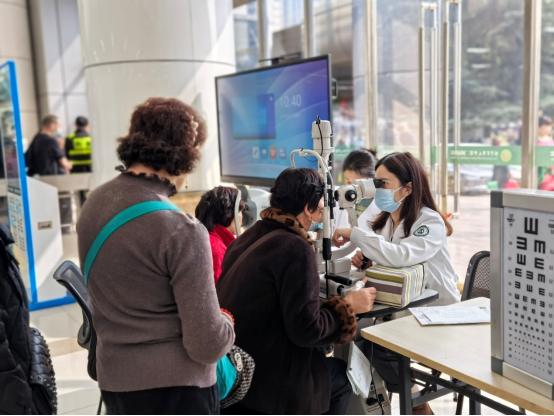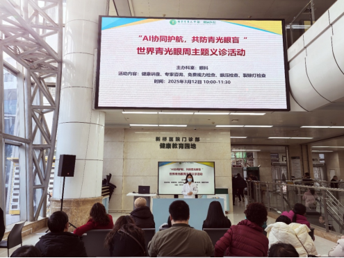 为提高公众对青光眼的认识,世界青光眼协会于2008年将每年3月的第二周定为“世界青光眼周”。3月12日,新桥医院眼科响应号召,在门诊部健康教育园地及眼科门诊同步开展主题为“AI协同护航,共防青光眼盲”的义诊活动。活动吸引了百余名病友的广泛关注,现场气氛十分热烈。