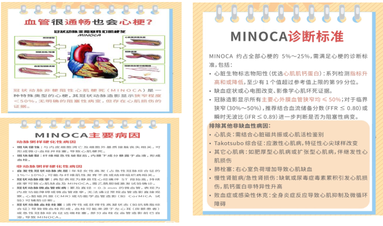 “非阻塞性冠状动脉心肌梗死(MINOCA,‘隐形心梗’)并非‘假心梗’,而是真实存在的致命疾病,其诊治关键在于精准识别病因、对症施治。”赵晓辉主任强调,临床上不少胸痛患者容易将症状归咎于“劳累”“胃病”,还有部分患者因心电图正常、冠脉无明显狭窄就忽视潜在风险,实则可能因此错失最佳治疗时机。此次病例的成功救治,不仅体现了科室对罕见心血管疾病的深刻认知和精准诊疗能力,也彰显了光学相干断层成像(OCT技术)等先进技术在精准诊疗中的重要作用,更为行业内同类病例的规范化诊疗提供了宝贵参考。