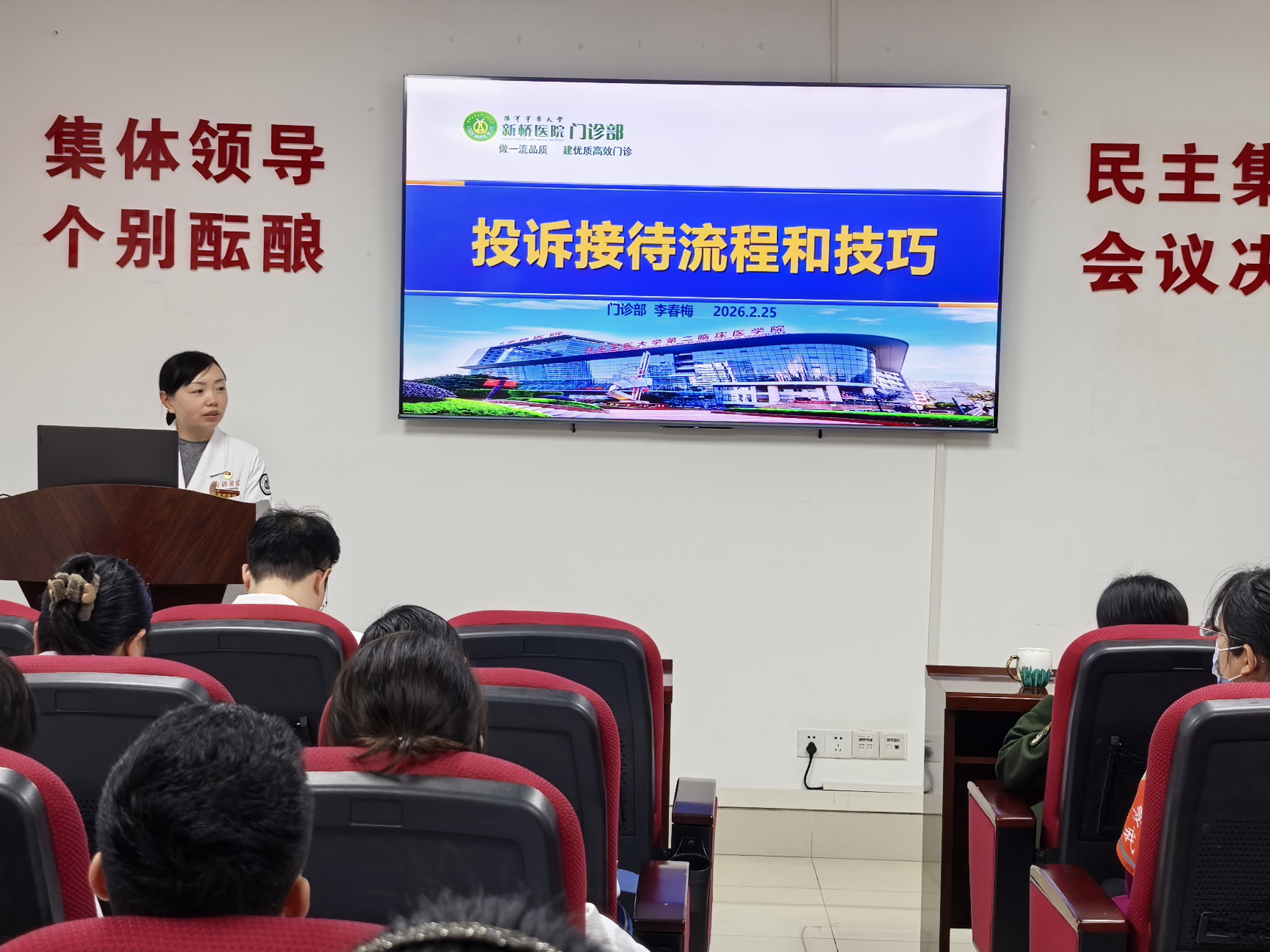 为进一步提升医疗服务质量,优化患者就医体验,新桥医院门诊部于2026年2月25日组织开展了《投诉接待流程和技巧》专项业务学习。本次学习由门诊部办公室李春梅老师主讲,旨在将投诉转化为改进服务的契机。