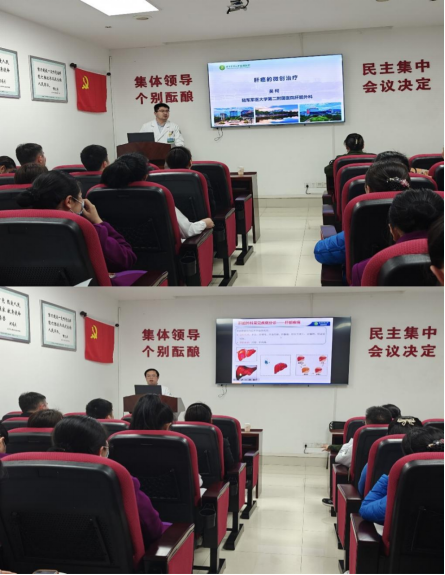 在本次学习会上,吴柯主治医师以肝癌的微创治疗为主题,系统性地讲解了肝癌的发病机理及相应的治疗策略。他特别强调了肝胆外科领域微创技术的最新进展,如精准切除、巨大肿瘤切除、单孔腹腔镜以及机器人辅助下的肝脏切除等关键技术。我院肝胆外科团队凭借其精湛的诊疗技术和尖端的设备支持,在西部地区保持着领先地位,为患者提供了更加安全、有效的治疗方案。