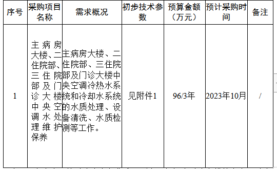 中央空调水处理维护保养项目采购意向公开