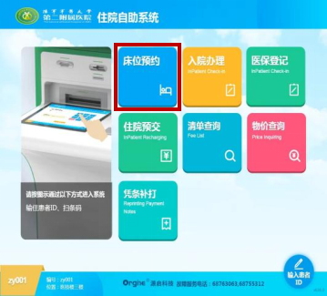 (2)门诊一楼A区入院服务中心自助机自助办理;