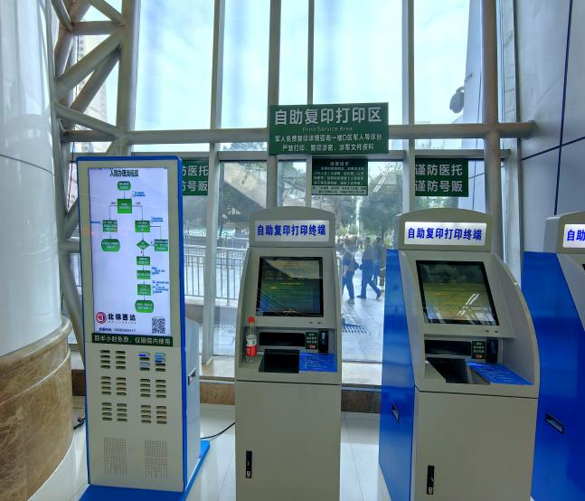 1.自助复印机在门诊一楼A区入院服务中心自助办理区旁边(一号门进门右侧)。