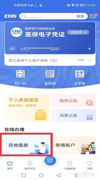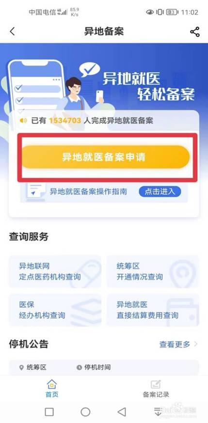 2、点击首页【异地备案】