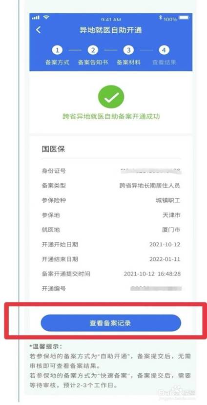 若参保地的备案方式为“自助开通”,备案提交后,无需审核即可查看备案结果。