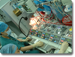 体外循环不停跳心内直视手术,即在心脏跳动下完成心脏手术,此法使手术心脏避免了缺血损伤和灌注损伤,具有损伤小、痛苦小,恢复快,并发症少等优点,尤其适合于心功能差的重症病人,使过去认为失去手术机会的危重病人,获得了新生。我科开展浅低温体外循环心脏不停跳下心内直视手术2100余例,应用于危重瓣膜病和复杂先心病(包括法乐氏四联症、完全肺静脉异位引流、房室管畸形、右室双出口、大动脉转位、三尖瓣闭锁、单心房、完全肺静脉异位引流等)和婴幼儿先心病外科治疗,使用范围和治疗水平居国内国际领先水平。我科这项技术的应用获2001全军医疗成果二等奖,是世界上数目最大宗的不停跳心脏手术。这项技术的应用在统计源期刊上发表论文20余篇,会议交流10篇,主办学习班1次,培养进修生12名,研究生10名,已在军内外单位15家单位推广应用 |