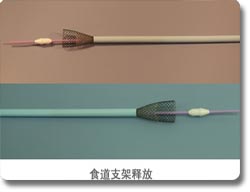 我科近3年来开展的胃镜下食道扩张术和记忆金属支架置入术治疗多种原因引起的食道狭窄,效果良好。目前国产金属支架主要采用不锈钢和镍钛合金。镍钛合金,不仅具备生物材料全部优点,还具有温度-形状记忆特性,支架形状的回复力对组织产生持续而柔和的扩张作用,使得支架植入患者的进食困难症状明显减轻,由于生物相容性好,可较长期放置体内。主要适应症包括,中晚期食道癌、食道癌术后复发和食道癌放疗后引起的吞咽困难,食道癌术后吻合口狭窄。治疗后10分钟内可解除吞咽困难,增加进食量,明显改善生活质量。 图示为:支撑性与柔韧性完美协调的记忆镍钛合金支架 |