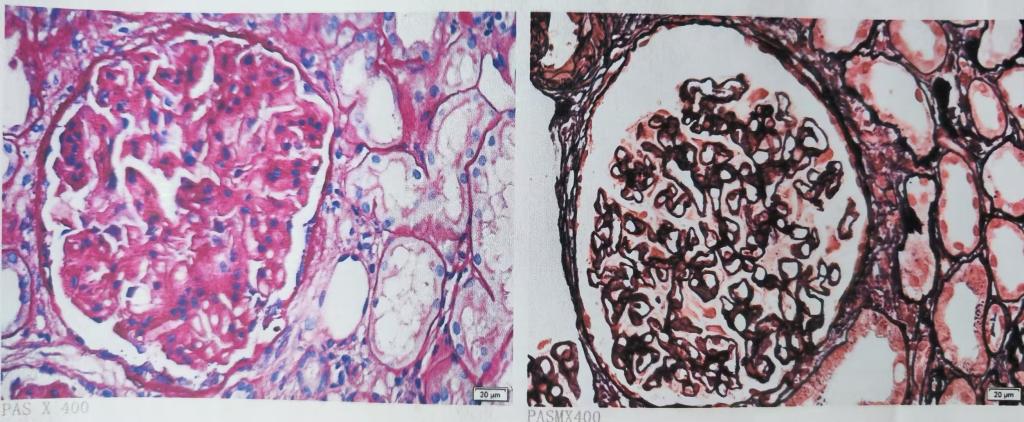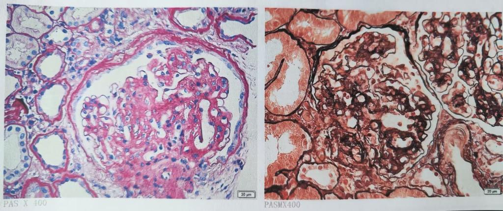 学科具有独立开展肾脏病理诊断资质,现有专职病理医师4名、技术员3名,常规开展光镜、免疫荧光、透射电镜检查。针对特殊病例,中心还可行油红O、III型胶原、IV型胶原载脂蛋白等特殊染色,实验室还开展免疫组化CD3、CD20、CD38、CD68等分子病理染色检查等病理检查项目,强力支撑了临床诊治和预后判断。现年肾活检2300余例,累计完成3万余例。