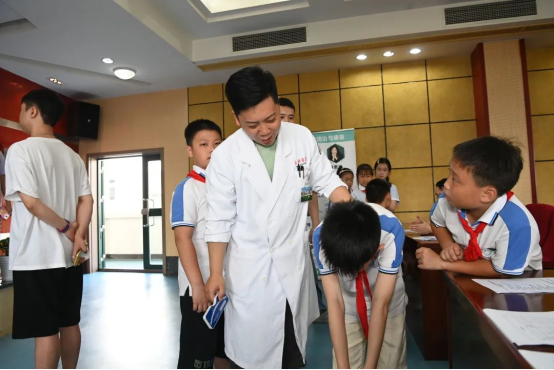 活动中,医护专家们为小朋友们进行细致的体态筛查,用通俗易懂寓教于乐的方式向小朋友们传授脊柱健康、运动损伤、儿童创伤防治等健康科普知识,同时为老师们进行运动康复治疗指导。参加活动的孩子们兴致勃勃地与医护人员互动,在开心愉快中收获满满健康新知。