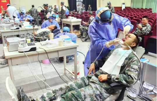 “平时要注意勤刷牙,少吃刺激牙龈食物。”“剧烈的疼痛是牙髓炎最典型的症状......”除了送医之外,专家们还为官兵们进行详细的口腔知识科普宣讲,以通俗易懂的语言及生动形象的事例,让官兵们及时了解自己的口腔健康状况、牙齿疾病的危害、保护牙齿的方法。同时,医疗队员们向部队卫生人员进行口腔临床常见病的规范化诊治、口腔急症及颌面部训练伤应急处置等专业培训,提高基层卫生人员牙病防治技术水平,提升军事口腔卫勤的保障能力,达到“早预防、早发现、早诊断、早治疗”的效果。