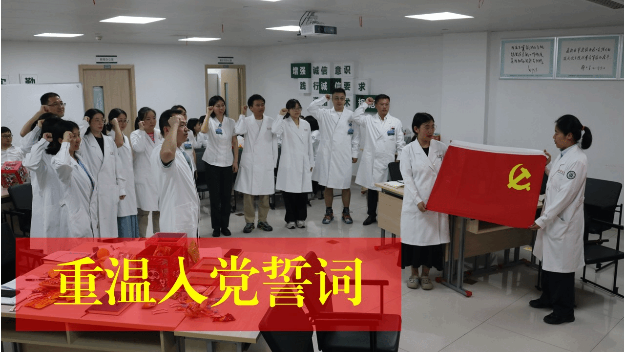 2024年6月27日,临床医学研究中心党支部“七一”——“强组织、建友爱 共奋进、创一流”主题活动,党员重温入党誓词。