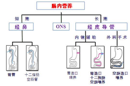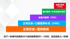 肠内营养的应用:1.住院病人预期3天进食不够,应给予肠内营养。