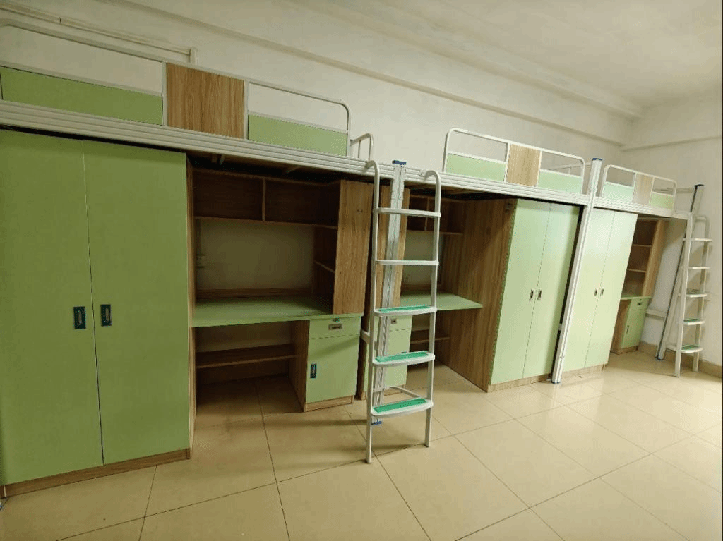 为更好地保障学员住宿条件,学员管理中心分别于2022年8月、2023年12月、2024年9月分批次完成了第一教学楼和第二教学楼的床具换新工作。计划于2025年完成第三教学楼和护士公寓学员宿舍床具换新。