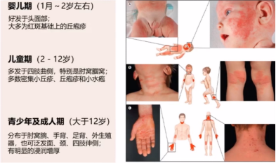 特应性皮炎最常发生在儿童身上,也有许多成人发病,且整体发病率呈逐年上升趋势。不同的年龄发病部位和表现形式可能不同。