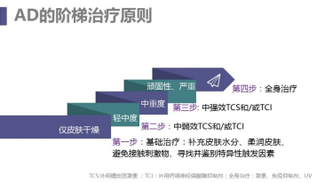 在进行治疗前,应对特应性皮炎的严重性进行评估分级(如:湿疹面积严重指数、特应性皮炎严重性计分、皮损面积、瘙痒评分等)。通常将特应性皮炎分为:仅皮肤干燥、轻中度、中重度、顽固性/严重四个等级,并应按照阶梯治疗原则进行合理的治疗。