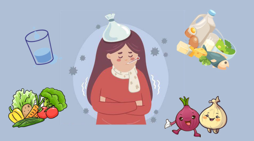 摄入优质蛋白质。有的人认为感冒发烧后,不能吃猪肉、牛肉、羊肉、鸡蛋等食物,否则会助长体内热邪。其实,感冒发烧后一般不需要严格限制某种食物的摄入,只需要减少辛辣、刺激、油腻食物的摄入即可。而且,蛋白质是构成机体组织和器官的重要成分。如果没有足够蛋白质,免疫细胞就无法修复和快速繁殖,以对抗细菌和病毒入侵。所以,建议感冒发烧的人群适当多吃一些富含优质蛋白质的食物,如精瘦肉、鱼肉、鸡蛋、大豆制品。另外,感冒患者可适当多喝点肉汤,肉汤中除了丰富的水分外,还富含维生素和矿物质等,应鼓励多喝,但是汤热量和蛋白质含量低,因此,喝汤时一定要吃里面的肉,只喝汤不吃肉的做法是错误的,但是如果汤中油脂含量较高时则不建议补充,如猪蹄汤等,另外,偏咸的汤也应少喝。