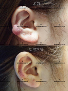 4、手术 单纯手术切除瘢痕疙瘩复发率极高,现一般采用手术切除+放射治疗,或配合瘢痕针注射,以降低复发率。